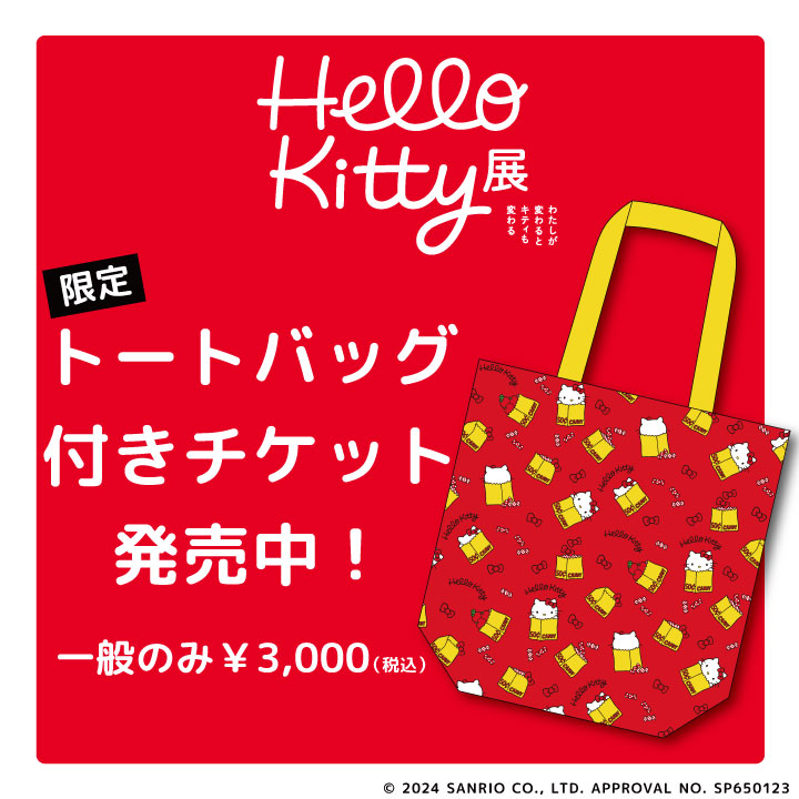 ハローキティ展限定のオリジナルトートバッグが付いたチケットがあります!